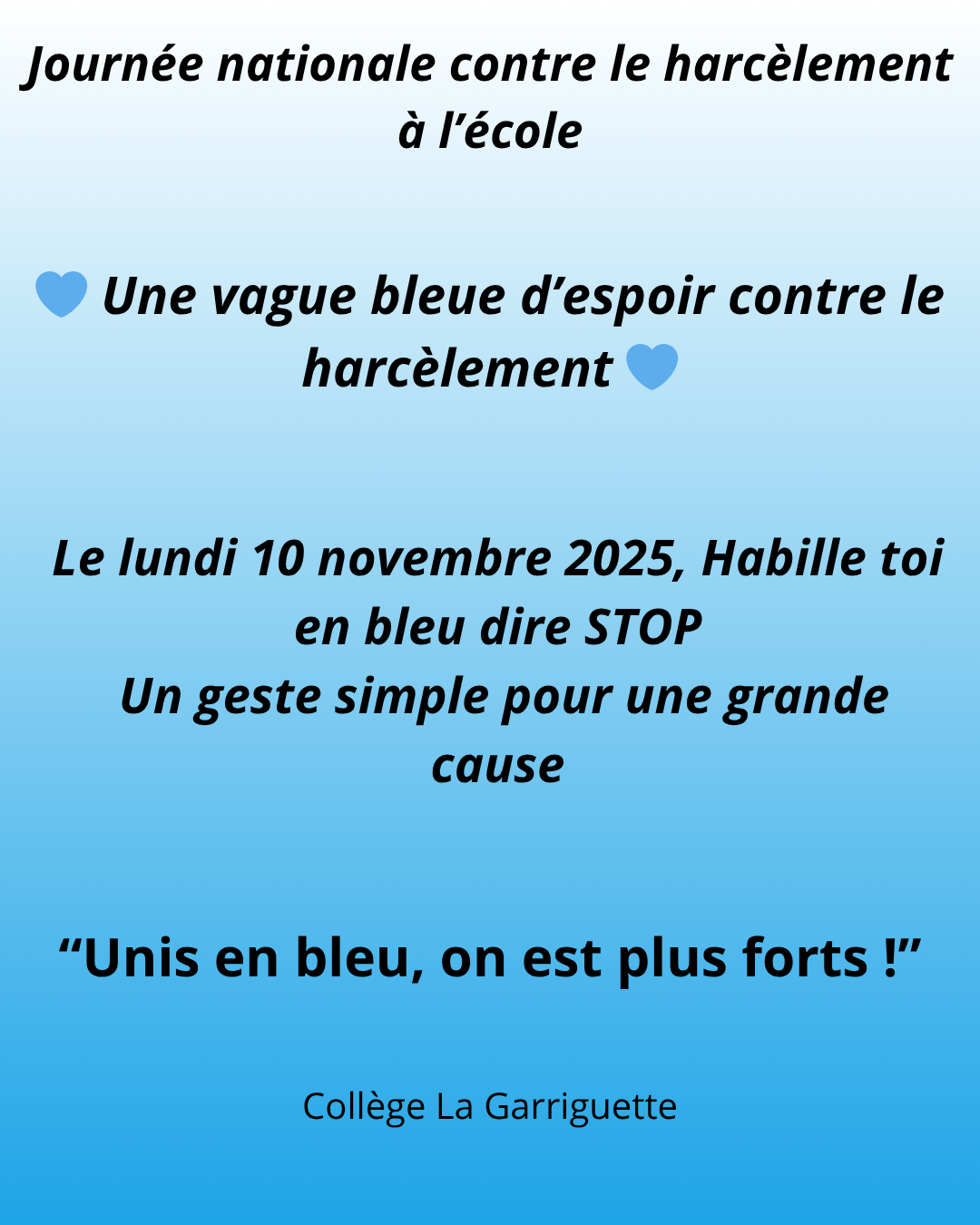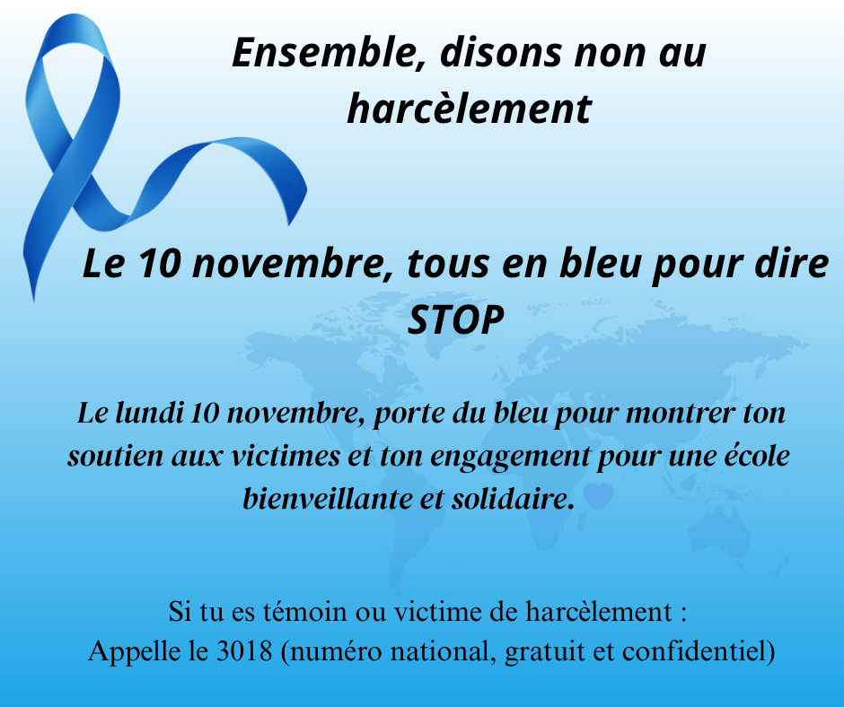 💙 Le 10 novembre : Tous en bleu contre le harcèlement ! 💙